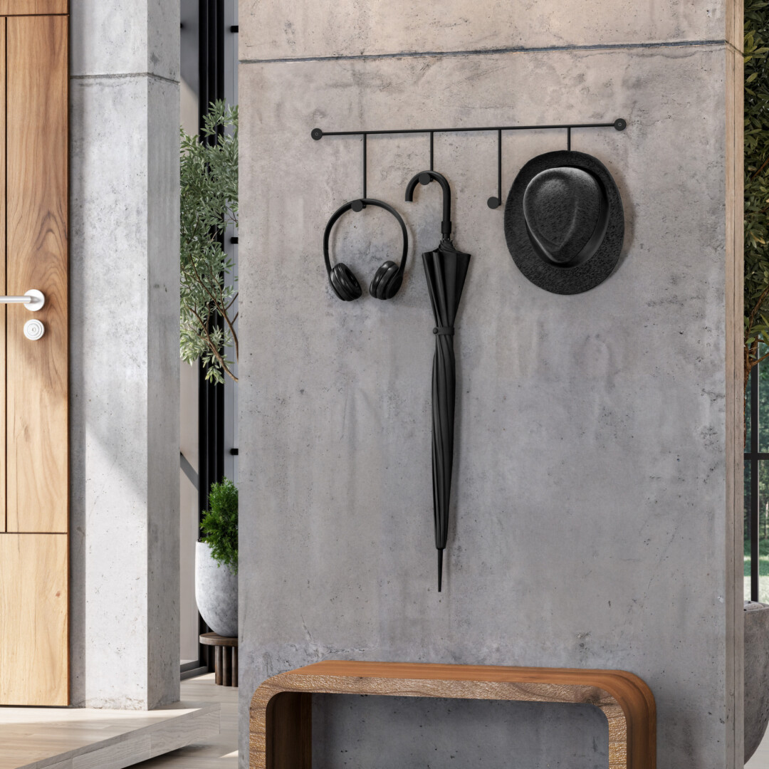 O Cabideiro Aramado Preto 04 Ganchos CABA-04 é perfeito para transformar a organização do seu ambiente. Com design moderno e funcional, suporta até 10 kg, sendo ideal para pendurar casacos, bolsas, mochilas e acessórios no dia a dia. Fabricado em aço carbono com pintura eletrostática preta, garante alta durabilidade, resistência e um acabamento sofisticado que se destaca em qualquer decoração