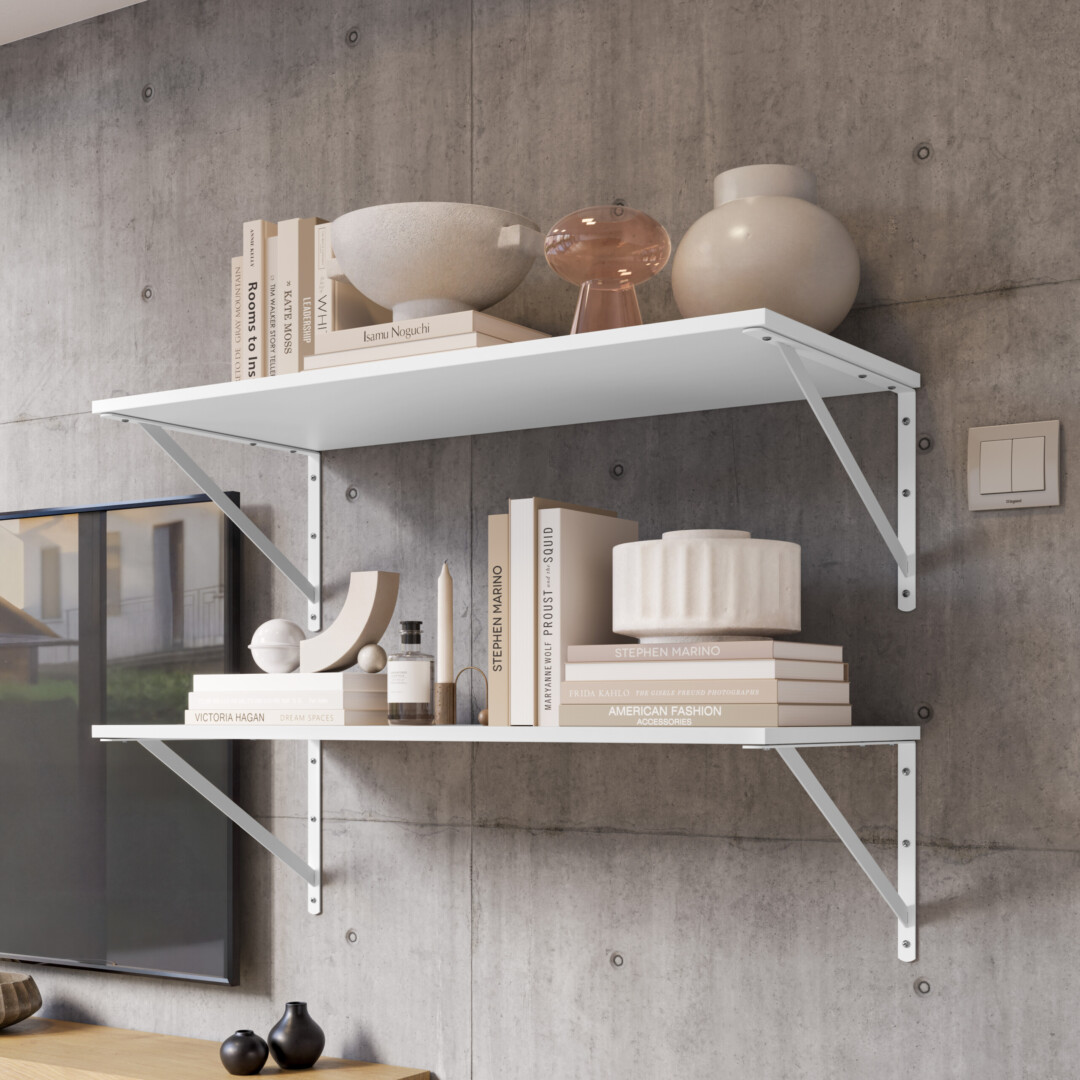 Esta mão francesa é fabricada em aço carbono, com pintura epóxi na cor branca e suporta até 70kg.