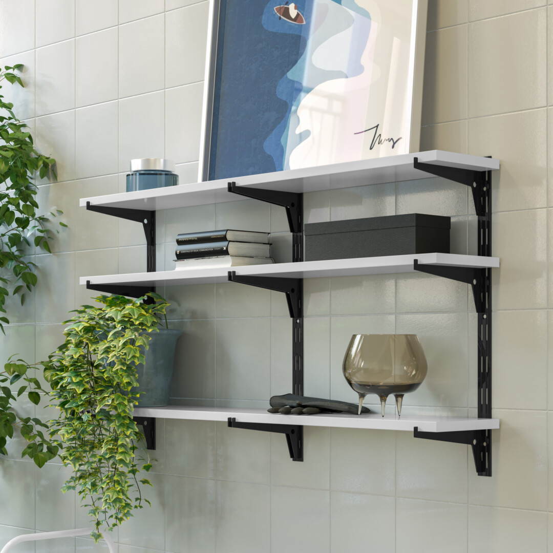 Seja qual for sua necessidade, com a Linha Organização Brasforma será possível construir ambientes de forma clean e sofisticada. O trilho duplo TDB-50 preto suporta até 50 kg, é fabricado em aço carbono e com pintura epoxi. A linha também pode ser utilizada na montagem de lojas, garagens, lavanderias e etc.